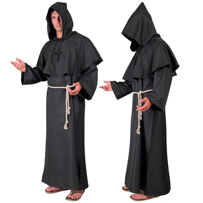 Musta munkin huppukaapu ja ristikoru. Sopii myös moneen muuhun teemaan; esimerkiksi asuksi viikatemiehelle tai hieman tuunaamalla kaavuksi Star Warsista tutuille Sitheille.