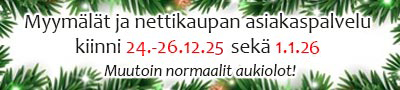 Myymälä avoinna: Ma-pe klo 10–18 Lauantaisin klo 10–16 Su suljettu Myymälä kartalla |